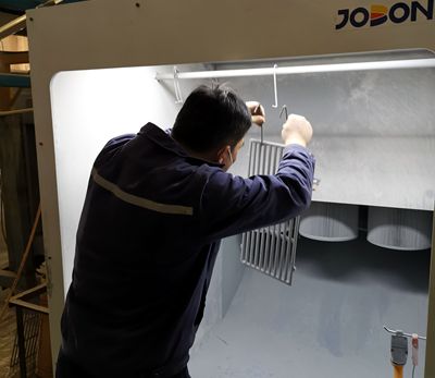 12月1日,由河北三廈廚具科技有限公司、青島中邦科技發展有限公司、多瑪得(廈門)精細化工有限公司、土耳其金盛釉料有限公司等共同發起并參與的“鑄鐵搪瓷爐架及烤網靜電干粉噴涂技術”項目現場實驗工作在河北三廈廚具科技有限公司開展。不同產品、不同靜電干粉經靜電噴涂工藝噴涂燒成后,通過對產品外觀及理化性能的檢驗和測試,取得預計的良好效果,經過討論,全體參與實驗的專業技術人員對“鑄鐵搪瓷爐架及烤網靜電干粉噴涂技術”項目的成功抱有樂觀積極的信心。寧波吉盛、美國韋伯的負責人參與了現場實驗。