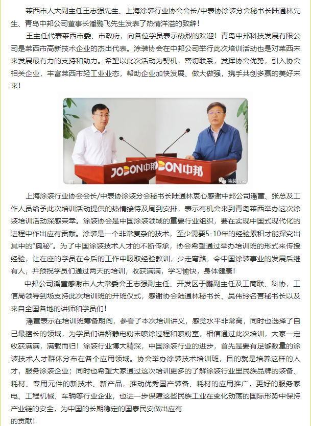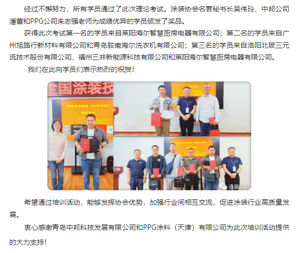 2023涂裝技術培訓班(青島萊西中邦公司)成功舉辦