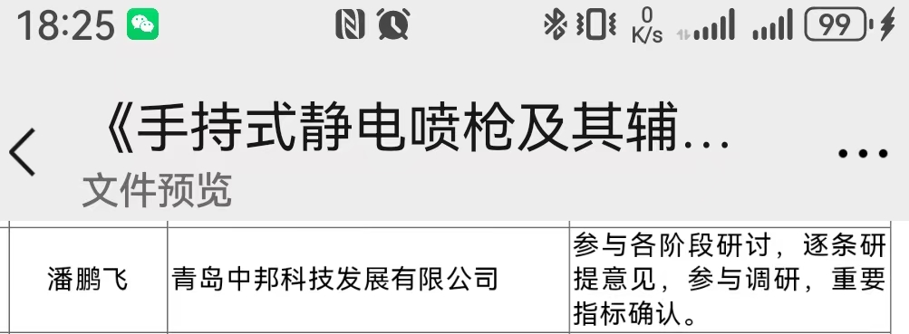 2024年12月6日,中邦董事長潘鵬飛以中國靜電噴涂設備專家身份參與的國家標準GB14773(關于靜電噴槍)修訂工作,