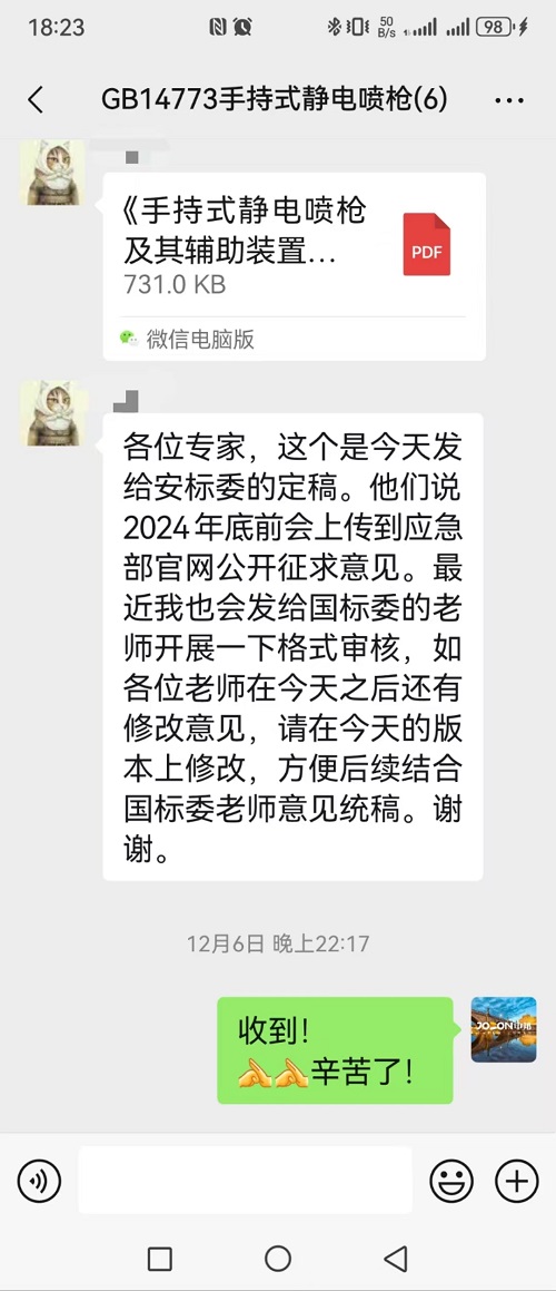 去年潘鵬飛董事長還參與了另一個國家標準GB15607(關于涂裝設備)的修訂。